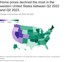 At the heart of the article is a heat‑map that colors U.S. counties and states by the percentage drop in median home prices relative to their peak levels in 2021. The map is immediately eye‑catching: the deep blues of the Pacific Northwest, the muted greens of the Midwest, and the pale oranges of the South all tell a different story. The map demonstrates that the West and the Mountain states are bearing the brunt of the decline, with many areas experiencing price drops in the 10 %–20 % range. In contrast, Texas and Florida are still showing modest gains, and some parts of the South are essentially flat.